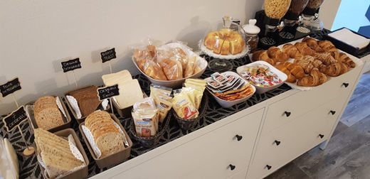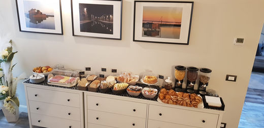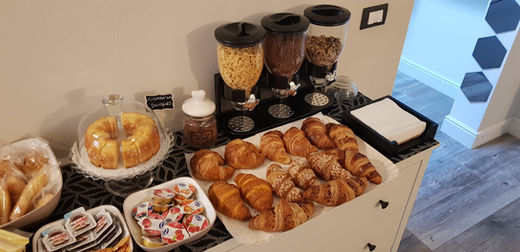 Ogni mattina, nella nostra accogliente area comune, vi attende una ricca colazione a buffet, pensata per soddisfare ogni palato. Se amate iniziare la giornata con un tocco di dolcezza, potrete scegliere tra croissant fragranti, paste e torte. Per chi preferisce una colazione più sostanziosa, offriamo varietà di pane, salumi, formaggi e frutta di stagione, ideali per un pieno di energia.
